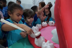 “Por meio dessas atividades lúdicas, as crianças começam a entender a relevância da escovação e da prevenção, o que as ajuda a desenvolver esses hábitos até a vida adulta. É fundamental que, desde cedo, elas se familiarizem com a rotina de escovação para evitar problemas como cáries. Também buscamos mostrar a elas que não precisam ter medo do dentista. O foco principal aqui é a prevenção”, explicou Ana Gabriela.