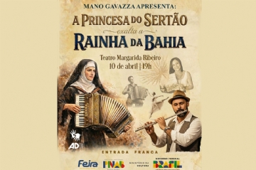 No dia 10 de abril, às 19h, o Teatro Municipal Margarida Ribeiro, em Feira de Santana, será o palco do espetáculo musical ‘A Princesa do Sertão Exalta a Rainha da Bahia’. A realização deste evento é apoiada pela Prefeitura Municipal, por meio da Secretaria de Cultura, Esporte e Lazer, e tem à frente o artista Mano Gavazza.