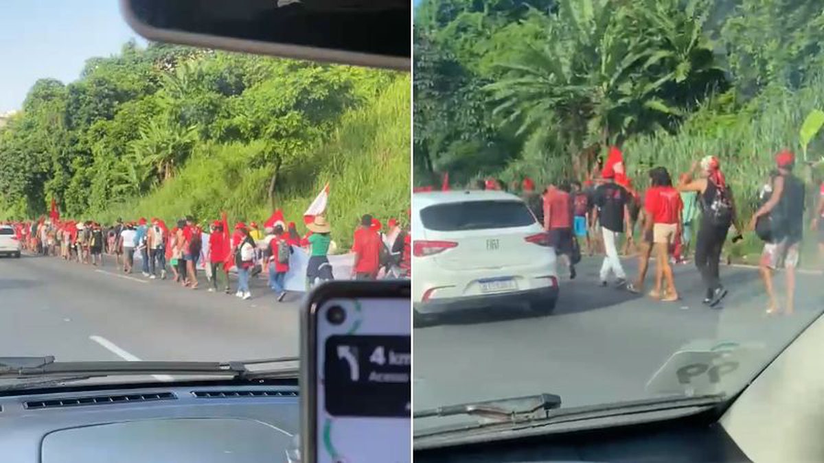 Uma grande manifestação organizada pelo Movimento dos Trabalhadores Rurais Sem Terra (MST) chegou a Salvador nesta quarta-feira, dia 15, gerando lentidão no trânsito da BR-324. Imagens recebidas pelo BNews revelam que os manifestantes ocuparam a faixa direita da rodovia, o que forçou motoristas e motociclistas a utilizarem apenas duas faixas para seguir viagem.