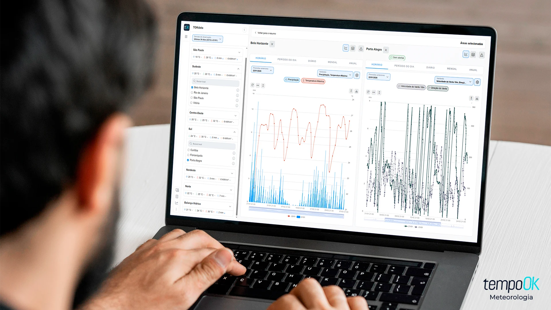 A TOKdata destaca-se por sua capacidade de combinar dados históricos, previsões meteorológicas e modelos de inteligência artificial em um ambiente digital acessível. Essa integração permite que os agricultores analisem as condições atmosféricas de forma abrangente, levando em conta o passado, o presente e o futuro. “Os produtores têm a oportunidade de comparar as safras atuais com as de anos anteriores, identificando padrões climáticos que impactam diretamente na produtividade e na saúde das lavouras”, explica João Hackerott, CEO da Tempo OK.