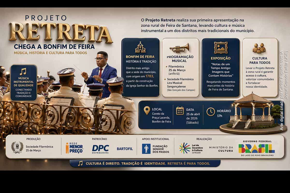 No dia 25 de abril de 2026, o distrito de Bonfim de Feira, em Feira de Santana, será palco da quarta edição do Projeto Retreta, que pela primeira vez se realiza na zona rural. Essa ação busca expandir o acesso à programação cultural, levando música instrumental e atividades artísticas a uma comunidade profundamente enraizada em tradições históricas e religiosas. A iniciativa se destaca como um passo significativo na democratização da cultura, buscando conectar as pessoas com sua identidade e memória.